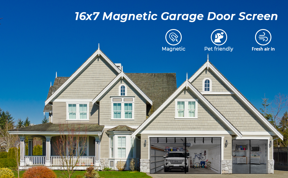 I used this on my covered balcony bc of wasps, bees, etc. This is perfect! It rolls up if needed, opens if needed. Magnets are strong, great airflow, very strong & durable, screen is see through & strong. I purchased the 2 car garage size. Fantastic! Very easy to put up. Looks lovely.